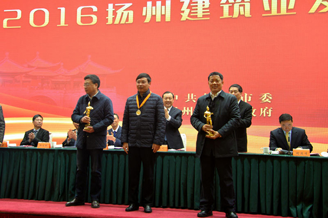 會(huì)議由聞道才副市長主持,與會(huì)人員首先觀看了“十二五”揚(yáng)州建筑業(yè)發(fā)展專題片,聽取了朱民陽市長所做的工作報(bào)告。然后市政府對(duì)2015年全市建筑業(yè)目標(biāo)管理獎(jiǎng)獲獎(jiǎng)單位和全市建筑業(yè)先進(jìn)企業(yè)、先進(jìn)個(gè)人進(jìn)行了表彰。建工控股公司獲得唯一的2015年市政府建筑業(yè)目標(biāo)管理一等獎(jiǎng),位列各縣(市)區(qū)之上,市委書記謝正義親自向陸金龍董事長頒獎(jiǎng)。2015年全市僅有的兩項(xiàng)魯班獎(jiǎng)工程均由江蘇華建創(chuàng)造,宗有農(nóng)總經(jīng)理、吳士茂主席上臺(tái)領(lǐng)獎(jiǎng)。此外,江蘇華建還有4名員工分別被市政府表彰為優(yōu)秀建造師、優(yōu)秀班組長。