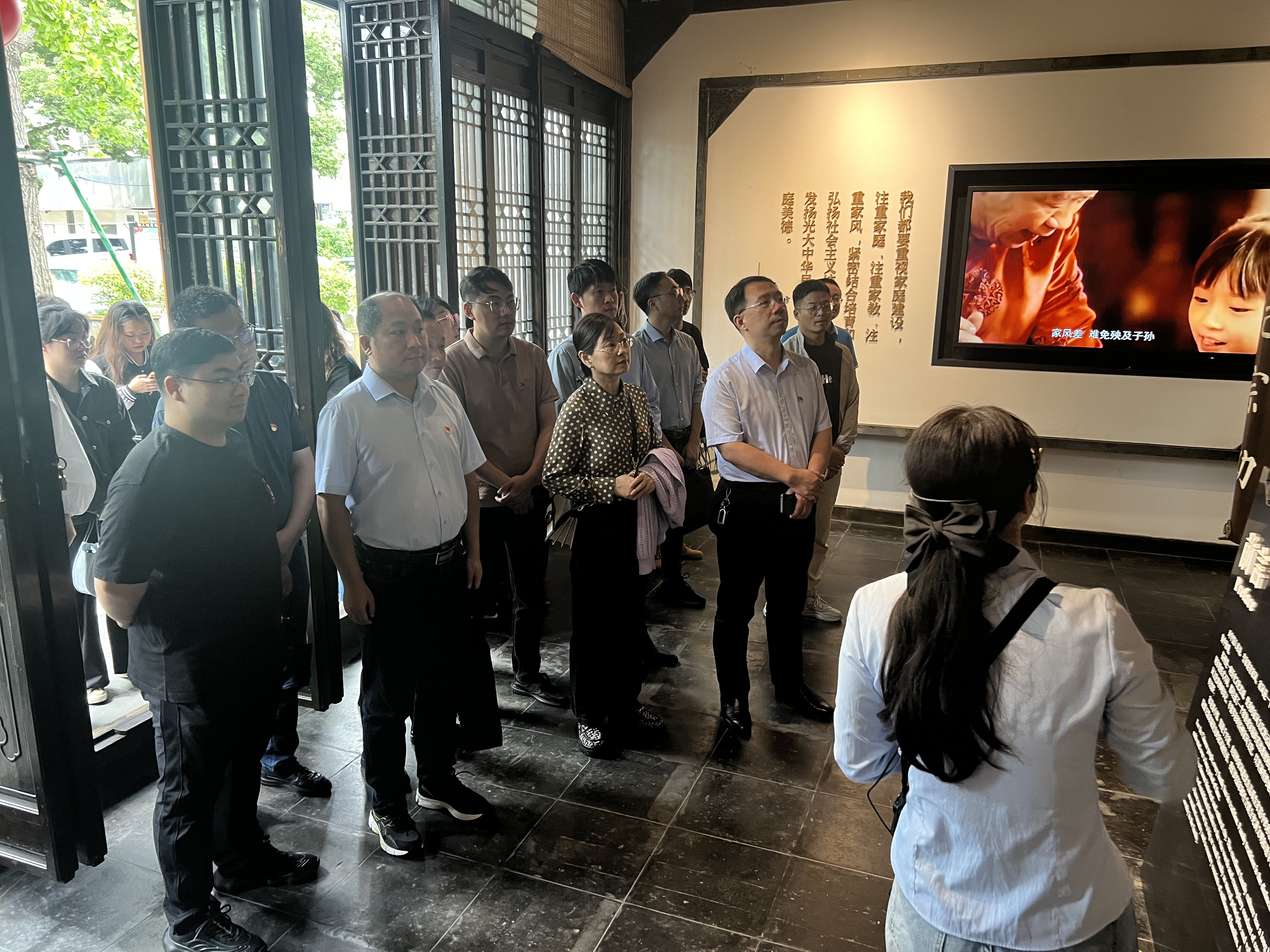 修身齊家守初心,言傳身教好風范。位于毓賢街8號的揚州家風展示館是此次行程的第一站。在家風館內,大家集體參觀了“愛國愛家 竭忠盡孝”“相親相愛 勤儉齊家”“向上向善 廉潔方正”“重文重教 詩禮傳家”“共建共享 潤澤鄰里”五大主題展區,認真聆聽了阮元、史可法、朱自清、江上青等揚州歷代先賢的家規家訓家風故事。觀后,大家有感悟、有思考,在分享時紛紛表示,要穩得住心神,抗得住誘惑,管得住手腳,要認認真真守牢入職初心,踏踏實實干好本職工作,本本分分活出自身色彩,為家人、為子女作出好示范、好榜樣。
