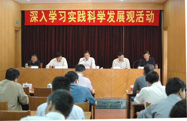 系統學習實踐活動領導小組組長、建控黨委書記陸金龍同志在會上作重要講話,對全系統學習實踐活動學習調研階段進行梳理總結,并部署了分析檢查階段的工作,具體要求做好六個方面工作:一是繼續深化學習提高認識,不斷增強貫徹落實科學發展觀的自覺性和堅定性;二是深入開展“三問三求”活動,確保問出實情求得良策;三是按照“三對照、三查看、三提升”的要求,精心組織召開領導班子專題民主生活會;四是形成高質量的分析檢查報告,深入檢查分析問題,理清科學發展思路;五是堅持邊學邊查邊改,著力解決突出問題、完善制度機制;六是以優良作風促進科學發展,確保學習實踐活動取得實實在在的成效。