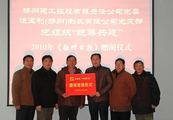 系統(tǒng)黨委向統(tǒng)籌共建單位贈(zèng)閱黨刊 時(shí)間:2009-12-226067 12月18日,建控公司黨委積極與外資企業(yè)恒寶利(揚(yáng)州)公司黨支部開展國有民營黨組織“統(tǒng)籌共建”活動(dòng),向其贈(zèng)閱了2010年《揚(yáng)州日報(bào)》以及《黨章》等黨報(bào)黨刊學(xué)習(xí)資料,并與團(tuán)員青年、入黨積極分子開展座談互動(dòng)交流。