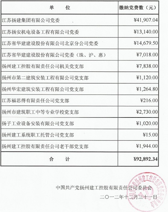 年度各單位上繳的黨費公布如下,請各單位接此通知后,認真核對。
