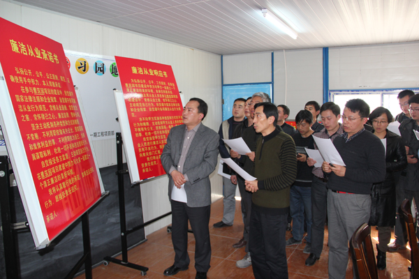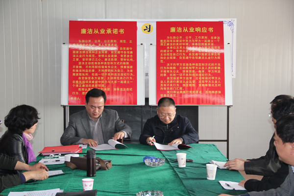 程杰董事長在儀式結束后的講話中特別強調了誓詞中的“三個常”,即常修從業之德,常思貪念之害,常懷律己之心,并提出五點要求:一是公司員工要加強學習,提高覺悟,本著對單位、事業和家人負責的態度時刻提醒自己廉潔自律;二是公司內部要加強制度建設,營造按制度運作、依規矩辦事的環境;三是經營團隊要管好自己,管好部下,不能有僥幸心理;四是違法違紀等問題一經發現將嚴查嚴究、決不姑息;五是希望施工方、監理方等相關合作單位和公司員工共同遵守廉潔自律協議,公平、公開、公正,一切按規章制度辦事,共同打造美好工作局面。