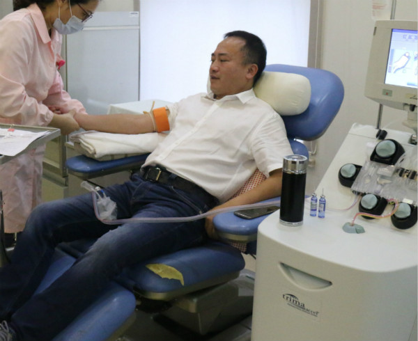 8月17日上午7時,建工控股系統191名干部職工不顧臺風“溫比亞”的肆虐,冒著瓢潑大雨趕到了市中心血站參與獻血活動,參與獻血人數創歷史新高。現場,大家認真填表、審核、體檢、化驗、采血,各個環節無縫銜接,秩序井然。每個人的臉上洋溢著快樂的笑容,他們深知在不久的將來,這些熱血將會挽救他人的生命。在血小板采集室,又見到了熟悉的面孔,江蘇華建公司總經濟師、地產集團總經理徐剛等8位同志連續多年堅持參與血小板的捐獻。經過大家共同努力,建工控股系統職工成功捐獻61000余毫升“溫暖”血液。