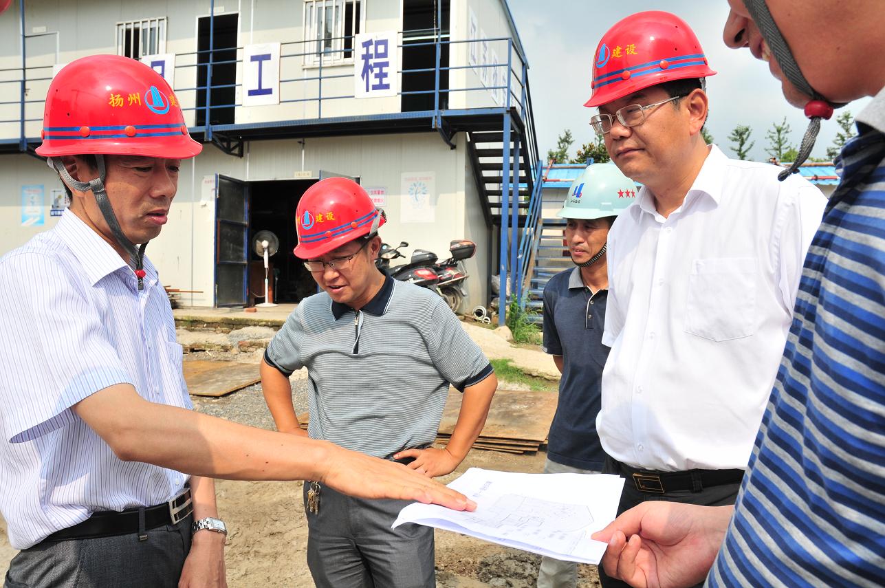 陳揚副市長視察建設大廈工地 時間:2011-08-226380 陳揚副市長視察建設大廈工地 8月12日下午,揚州市政府副市長陳揚、市建設局局長楊正福一行前往江蘇華建代建的揚州建設大廈暨規劃展覽館、市民中心項目工地現場視察。揚州建工控股公司、江蘇華建董事長陸金龍陪同視察,并將工程施工進展情況向陳副市長作了簡要匯報。陳副市長對建設大廈總體施工進展表示滿意,并提出希望所有參建單位精心組織,科學管理,確保這一政府重點工程建設順利推進。公司領導程杰等一起陪同視察。